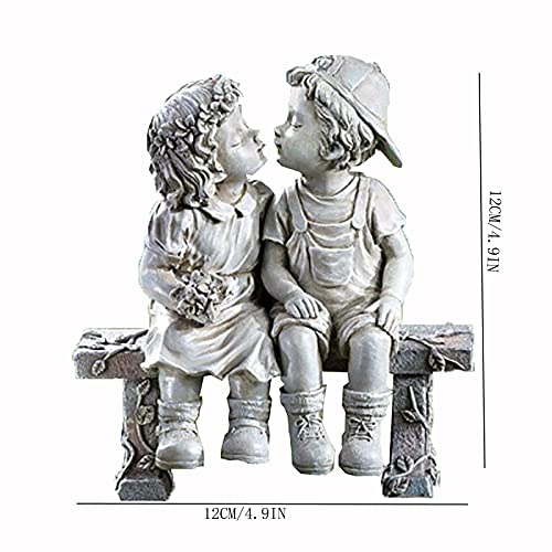 Specificaties: dfdfd Herinneringen voor jongens en meisjes, tuinbeeld, decoratie, ornamenten, massief stenen figuur jongen met meisje op bank, steengoed, vorstbestendig, creatieve tuinbeeldjes, tuinornamenten (C)