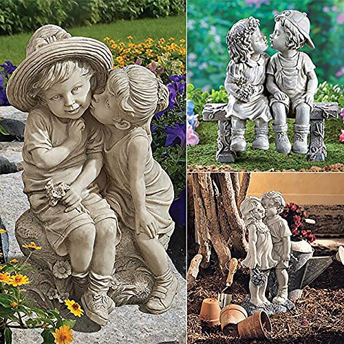 ✔✔ Het kenmerk van dit beeld is dat twee kinderen zich kussen. De veters, sloten, wilde bloemen en gereedschapsdetails van het beeld zijn zorgvuldig en perfect gesneden.