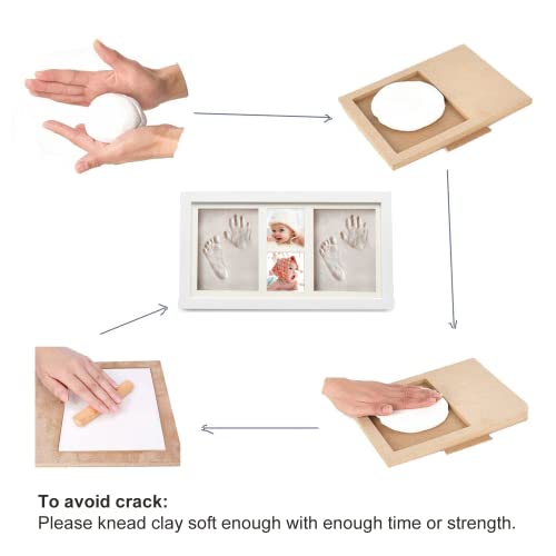 TENQUAN Pasgeboren Baby Afdrukken, Cadeau voor Pasgeboren Baby’s Inclusief 6 Pakjes Klei en Houten Fotolijstjes Maat 22x40cm Pakket voor Pasgeboren Baby Voetafdruk Frame, Baby Doop Decoratie