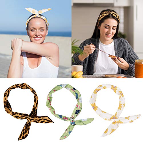 Wodasi 12 pcs hair bands with wire, bendable headbands, vintage twined headband, twist knot, hair band, bow, iron wire, bunny ears, headband, hair bands with flexible wire, style 3