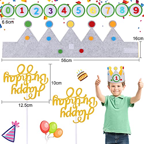 Specificaties: JOYUE Verjaardagskroon voor Kinderen, Stoffen Verjaardagskroon met Verwisselbare Cijfers van 0 tot 9, Uniseks Mousseline Kroon voor Jongens en Meisjes, Ideaal voor Verjaardagsfeesthoed